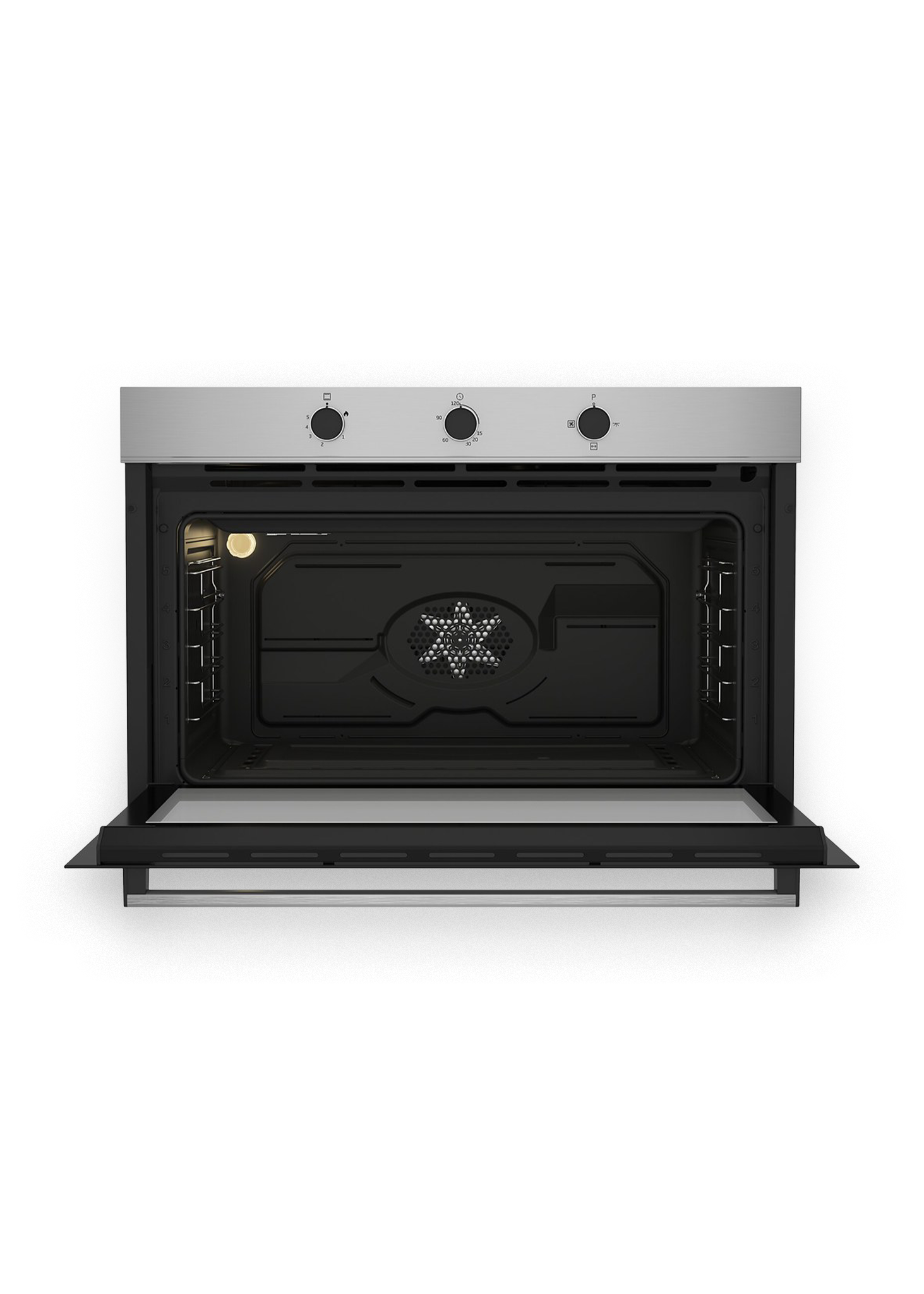5 niveles de potencia de gas. 3 Funciones: Luz interior. Cocción carne asada. Enfriamiento con ventilador. Temporizador con mando. 1 bandeja profunda de 90. 2 válvulas en Horno y Grill. Cierre suave: El sistema de cierre suave permite que la puerta cierre sin golpes sin necesidad de acompañarla.