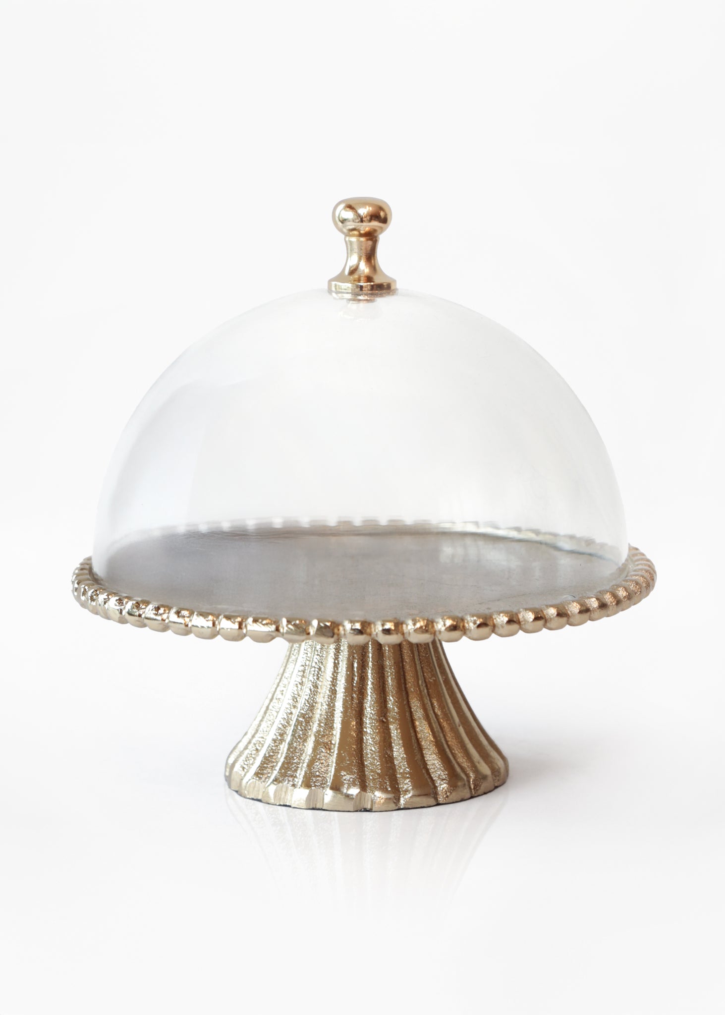 Tortero pequeño en vidrio con base en ceramica color dorado